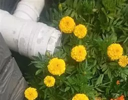 万寿菊是菊科万寿菊属一年生草本植物,别名孔雀菊、缎子花、臭菊花、西番菊、红黄草、小万寿菊、臭芙蓉、孔雀草。万寿菊茎近基部分枝。叶羽状分裂,长5-10厘米,宽4-8厘米,裂片长椭圆形或披针形,具锐齿,上部叶裂片齿端有长细芒,叶缘有少数腺体。头状花序单生,径5-8厘米,花序梗顶端棍棒状。总苞长1.8-2厘米,径1-1.5厘米,杯状,顶端具尖齿。舌状花黄或暗橙黄色,长2.9厘米,舌片倒卵形,长1.4厘米,基部成长爪,先端微弯缺。管状花花冠黄色,长约9毫米,冠檐5齿裂。瘦果线形,被微毛;冠毛有1-2长芒和2-3短而钝鳞片。花期7-9月。万寿菊中国各地均有栽培,在广东和云南南部、东南部已归化,国外原产墨西哥。万寿菊对土壤要求不严,但以肥沃疏松排水良好的土壤为好。耐移栽,种子发芽适温21-24℃,植株生长适合温度为20-29℃。喜温暖和阳光充足的环境,不