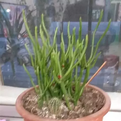 霸王鞭,是大戟科大戟属的多年生肉质灌木,全株含白色乳汁;茎直立,茎基部圆柱形,上部4~5纵棱,…