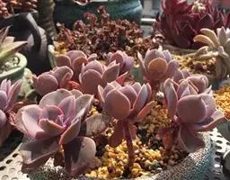 紫珍珠是景天科石莲花属的多年生肉质草本植物。植株中小型;叶片肉质,匙形,呈莲座状紧密排列;叶片粉紫色,…