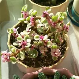 青星美人是景天科厚叶草属的多肉植物。开花时抽生出长长的花梗,簇状花序,红色花朵依次开放,呈倒钟形,…