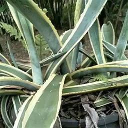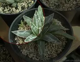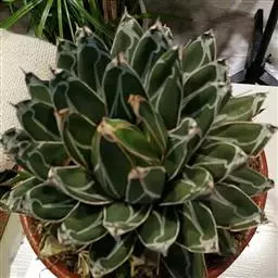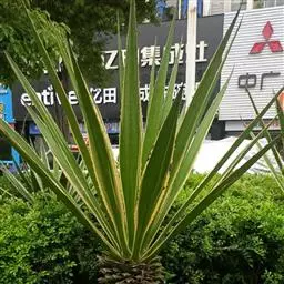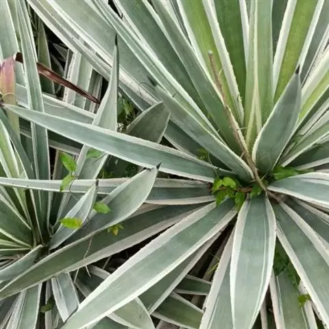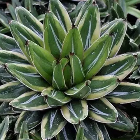 银边龙舌兰(学名:Agave angustifolia 'Marginata'):又名白缘龙舌兰,叶片两侧呈白色或略带淡红色。