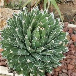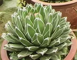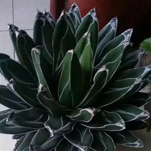 皇后龙舌兰是天门冬科、龙舌兰属多年生草本多浆植物。无主茎,叶丛生,莲座状,株幅40厘米。叶较多,…