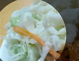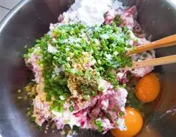 3.加葱姜蒜碎炒香。加糖生抽和胡椒粉调味。