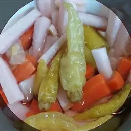 3、倒入野山椒、剁椒,加入少量的水。
