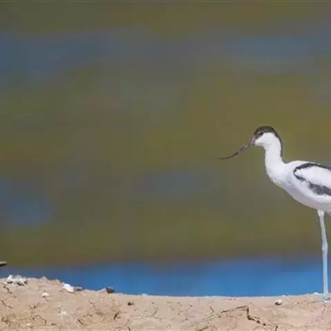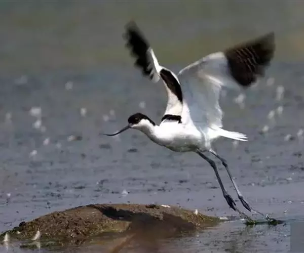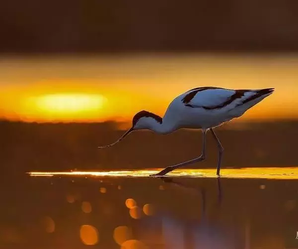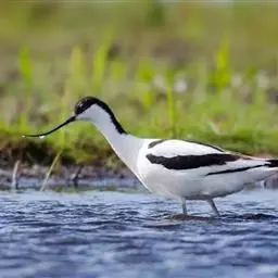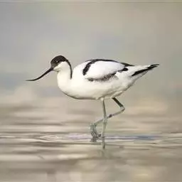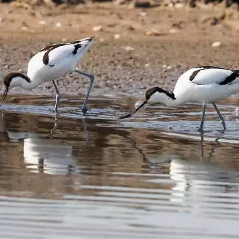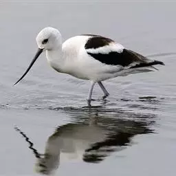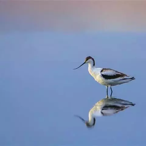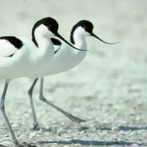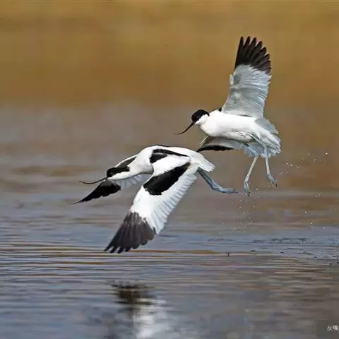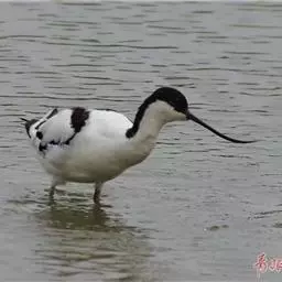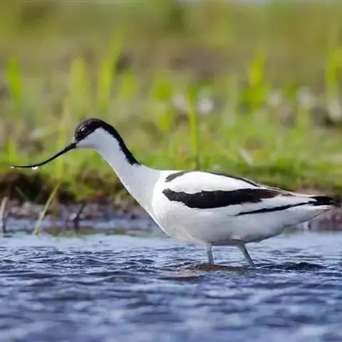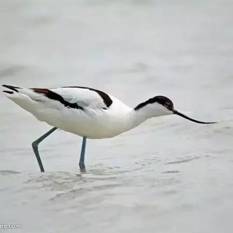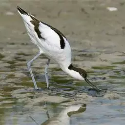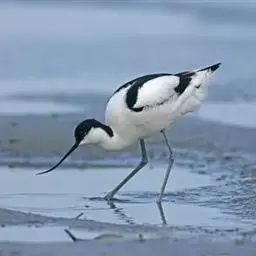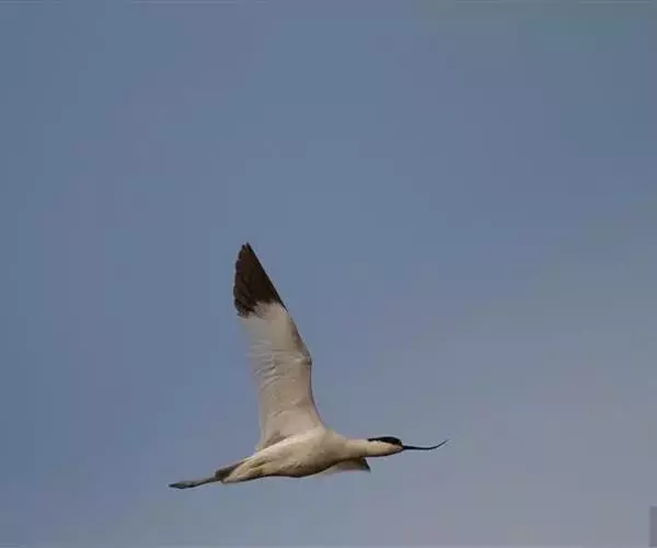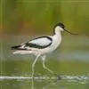 反嘴鹬(学名:Recurvirostra avosetta)是反嘴鹬科反嘴鹬属鸟类。中型涉禽,体长40-45厘米。嘴黑色,细长而向上翘。脚亦较长,青灰色。头顶从前额至后颈黑色,翼尖和翼上及肩部两条带斑黑色,其余体羽白色。飞翔时黑色头顶、黑色翅尖,以及背间部和翅上的黑带与白色的体羽和远远伸出于尾后的暗色脚形成鲜明对比,甚为醒目,野外不难识别。