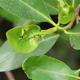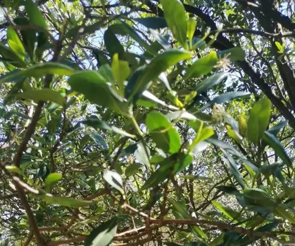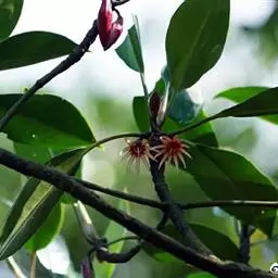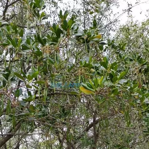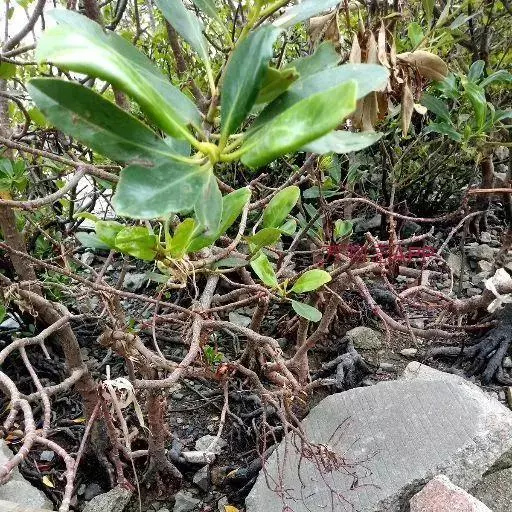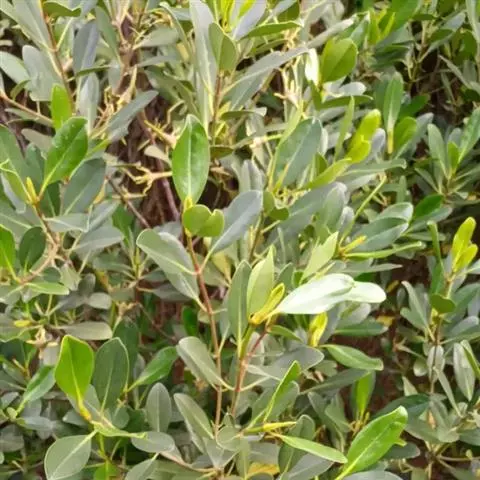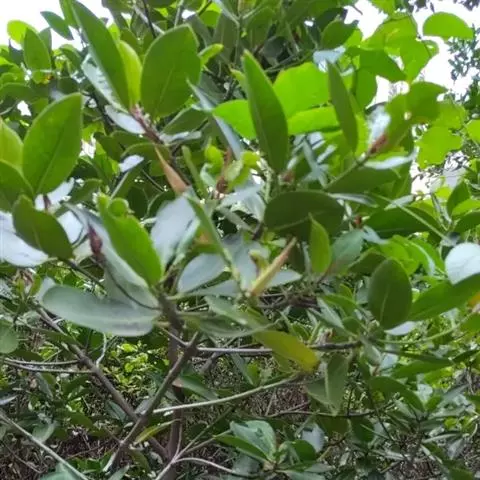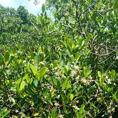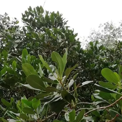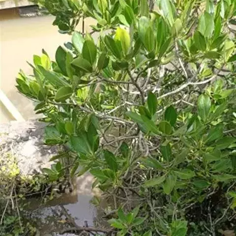 秋茄树(学名:Kandelia candel (L.) Druce)是红树科,秋茄树属灌木或小乔木,高可达3米;树皮红褐色;枝粗壮,有膨大的节。叶片椭圆形、矩圆状椭圆形或近倒卵形,叶脉不明显;托叶早落,有花,花具短梗,花萼裂片革质,花后外反;花瓣白色,膜质,雄蕊无定数,长短不一,花柱丝状,与雄蕊等长。果实圆锥形,胚轴细长,几乎全年开花结果。