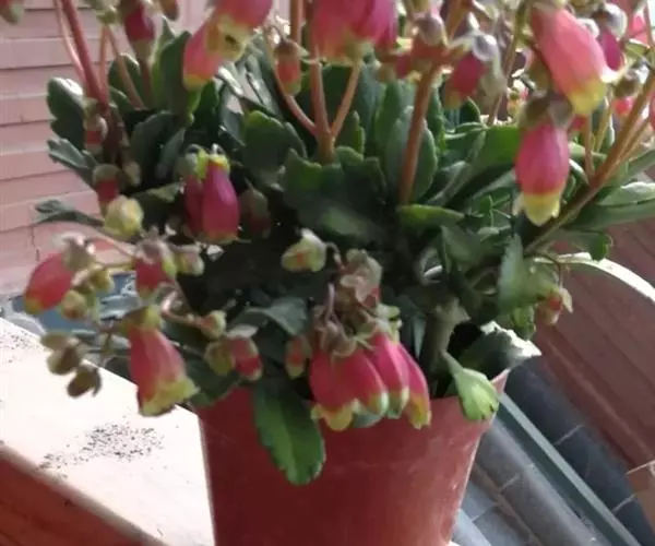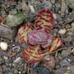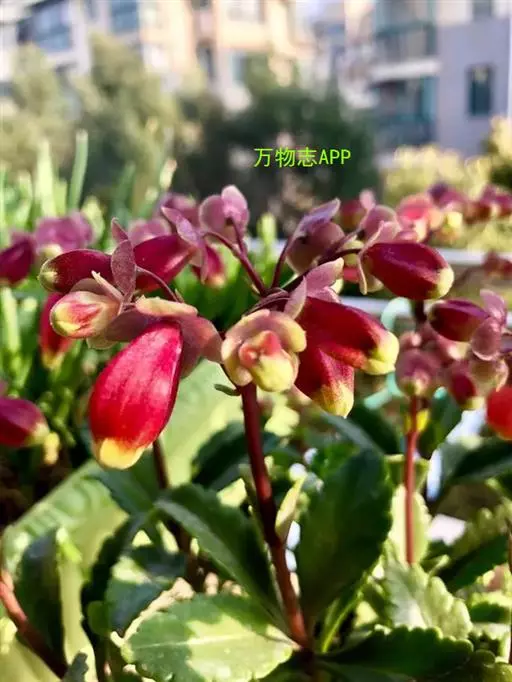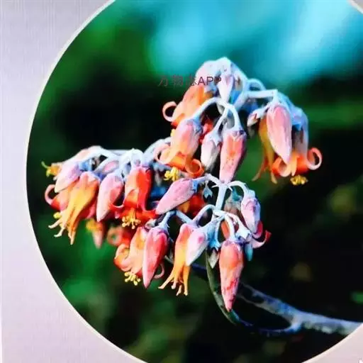 多年生肉质草本植物,株高20~30厘米,分枝较密,叶交互对生,肉质叶扁平,卵形至长圆 玉吊钟 形,长2.5~4厘米,宽2~3厘米,边缘有齿,叶蓝绿或灰绿色,上面有不规则的乳白、粉红、黄色斑块,极富变化,新叶更是绚丽多姿、五彩斑斓,是多肉植物中的观叶佳品,非常美丽.松散的聚伞花序,小花红或橙红色。