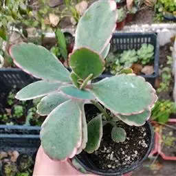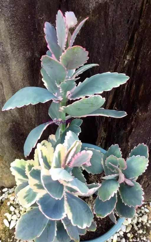 江户紫,景天科伽蓝菜属草本植物,是多年生草本花卉。花白色,但栽培中很少能见到花,常作观叶植物栽培。…