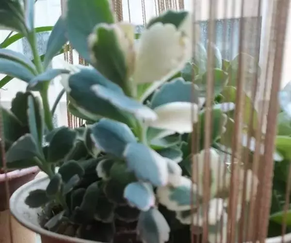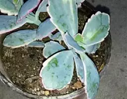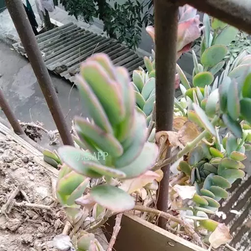 玉吊钟 (Kalanchoe fedtschenkoi 'Rosy Dawn' ),景天科、伽蓝菜属的多肉植物、也称多浆植物,别名洋吊钟。该物种喜温暖凉爽的气候环境,不耐高温烈日,它叶色艳丽,形态如花,株型美观,根须奇特,具有极高的艺术欣赏价值。原产马达加斯加岛干燥、阳光充足的热带地区。