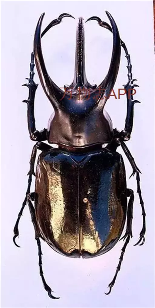 南洋大兜虫,学名:Chalcosoma caucasus这是一只生在马来西重热带林中的器性洋大虫,它是体形最大的昆虫之一,可达惊人的12厘米,它长着三个长而锋利的触角一一其中两个长在躯干上,一个在头部,南洋大兜虫在与雄性对手争斗时使用这些触角,它们试图用触角抱紧对手的身体,然后用力将其抛开,胜利者将得与雌性个体文配的机会。雌性个体没有触角,且体形更小 。