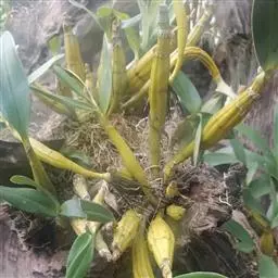 黄石斛:茎直立或下垂,多少肉质,细圆柱形,不分枝,具多数节。叶革质,长圆状披针形,…