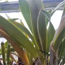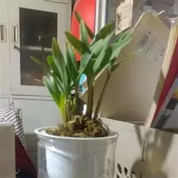 通常选用四壁多孔的塑料或陶瓷花盆,用碳根、泥炭藓、树皮块、木炭块等作盆栽材料。根据兰苗的大小,选择不同规格的花盆,但不宜用大盆栽小苗口上述栽好材料在使用前必需在清水中浸泡1天以上备用。盆底要多垫大瓦片或碎砖块,深度至盆底约1/3处,然后将兰苗放于盆中央,并在一旁插一细竹竿以固定兰苗,再填入其他栽培材料,注意根与根之间用材料隔开。