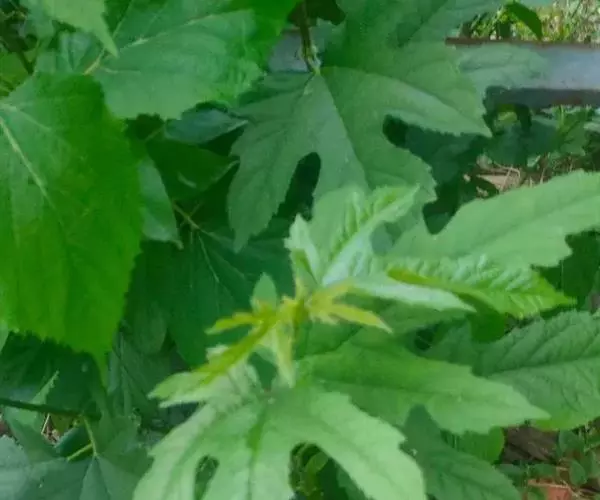 叶宽卵形,叶缘具多个不规则缺刻状深裂。