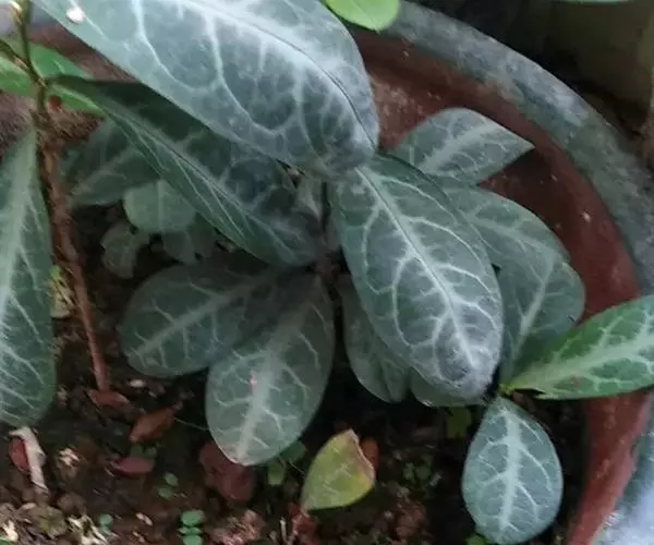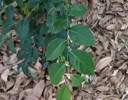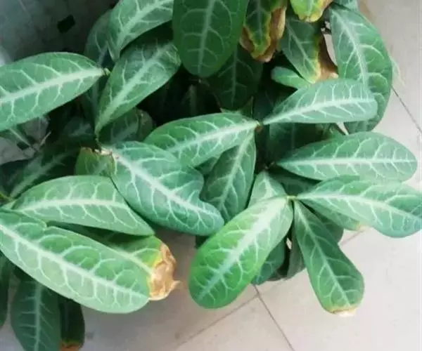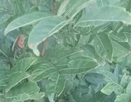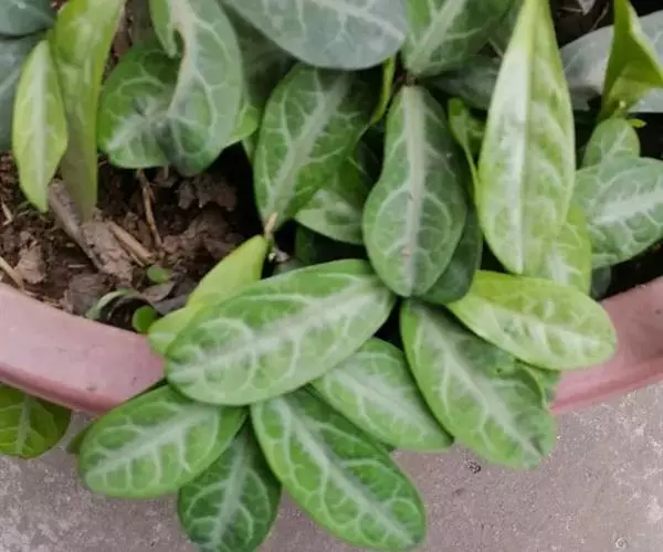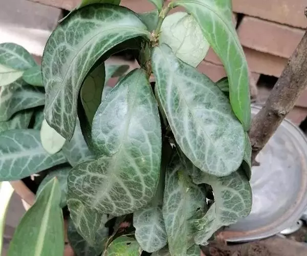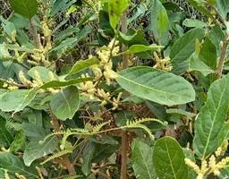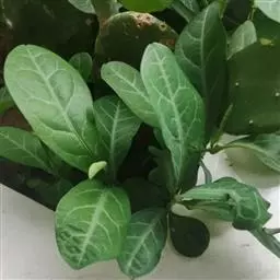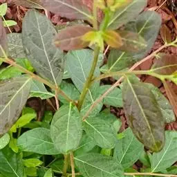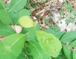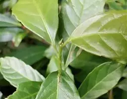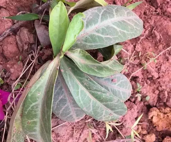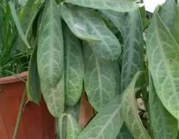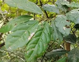叶通常聚生于小枝上部,常向下弯垂,叶片鲜时近肉质,干后近革质或厚纸质,匙形、倒卵状长圆形或卵形,有时长圆形,长4.5-16.5厘米,宽2.5-6.3厘米,顶端浑圆或钝,有小凸尖,稀凹缺,基部楔形或钝,稀圆形,上面鲜时深绿色,叶脉处呈灰白色,干时黄白色,通常无毛,有时下面基部有腺状短柔毛,后变无毛;中脉和侧脉在鲜叶时扁平,干后中脉两面均凸起,侧脉每边6-9条,下面稍凸起;叶柄长2-5毫米,初时被腺状短柔毛,老渐无毛;托叶三角状耳形,着生于叶柄基部两侧,长4-8毫米,基部宽3-4毫米,宿存。