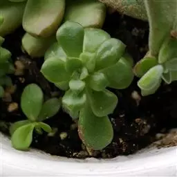 乙姬牡丹为景天科景天属多肉植物,有茎,叶互生,排列成莲座状,匙形,表面光洁,正面平坦,背面隆起,肉质厚实,翠绿色,或嫩绿色,叶面上被白粉。