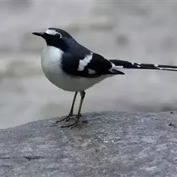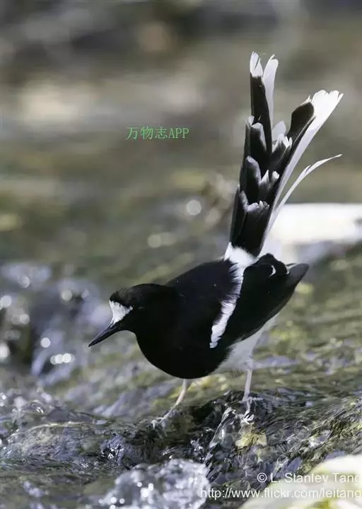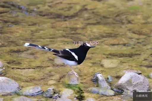 白额燕尾(学名:Enicurus leschenaulti)属中型鸟类,体长25-27厘米。尾长、呈深叉状。通体黑白相杂。额和头顶前部白色,其余头、颈、背、颏、喉黑色。腰和腹白色,两翅黑褐色具白色翅斑。尾黑色具白色端斑,由于尾羽长短不一,中央尾羽最短,往外依次变长,因而使整个尾部呈黑白相间状,极为醒目。栖息于山涧溪流与河谷沿岸,常单独或成对活动。性胆怯,平时多停息在水边或水中石头上,或在浅水中觅食,主要以水生昆虫和昆虫幼虫为食。分布于印度东北部、孟加拉国、缅甸、泰国、老挝、越南、马来西亚,印度尼西亚和中国。