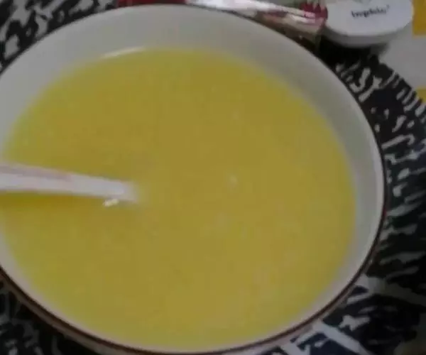 【制作】先以小米煮粥,取汁,再打入鸡蛋,稍煮。