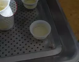 1. 将小米、黄豆分别磨碎,小米入盆中沉淀,滗去冷水,用开水调匀;黄豆过筛去渣。