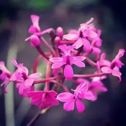 锦香草:草本,高10-15cm。茎直立或匍匐,逐节生根,近肉质,密被长粗毛,四棱形,通常不分枝。叶对生;叶柄长1.5-9cm,密被长粗毛;叶片纸质,广卵形、广椭圆形或圆形,先端广急尖至近圆形,基部心形,长6-16cm,宽4.5-14cm,两面绿色或有时背面紫红色,表面被疏糙伏毛状长粗毛,背面仅基出脉及侧脉被平展的长粗毛;基出脉7-9,表面脉平整,背面脉隆起。伞形花序,顶生,总花梗长4-17cm,被长粗毛,稀几无毛;苞片倒卵形或近侧披针形,被粗毛,通常仅有4枚,长约1cm,或更长;花梗与花萼均被糠秕;花萼漏斗状四棱形,裂片广卵形;花瓣粉红色至紫色,上部略偏斜,先端急尖;雄蕊4,近等长,花药基部具小瘤或不明显,药隔下延呈短距;子房杯形,先端具冠。蒴果,先端冠4裂,伸出宿存萼,宿存萼具8纵肋,果梗伸长,被糠秕。花期6-8月,果期7-9月。