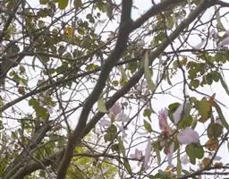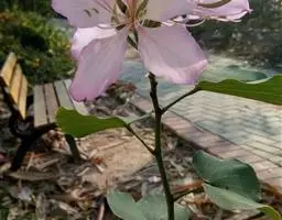 洋紫荆:落叶乔木;树皮暗褐色,近光滑;幼嫩部分常被灰色短柔毛;枝广展,硬而稍呈之字曲折,无毛。叶近…