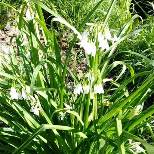 鳞茎卵圆形,直径2.5-3.5厘米。基生叶数枚,绿色,宽线形,长30-50厘米,宽1-1.5厘米,钝头。花茎与基生叶同时抽出,中空,略高于叶或与叶近等长;伞形花序有花3至数朵,有时仅1朵,下有佛焰苞状总苞片1枚,长3-4厘米,宽5-10毫米;花梗长短不一,长者约有5厘米,短者仅1-2厘米;花下垂;花被片长约1.5厘米,白色,顶端有绿点;雄蕊长约为花被片的一半;子房下位,长椭圆形,长5-10毫米;花柱长于雄蕊。蒴果近球形,直径约2厘米;种子黑色。花期春季。