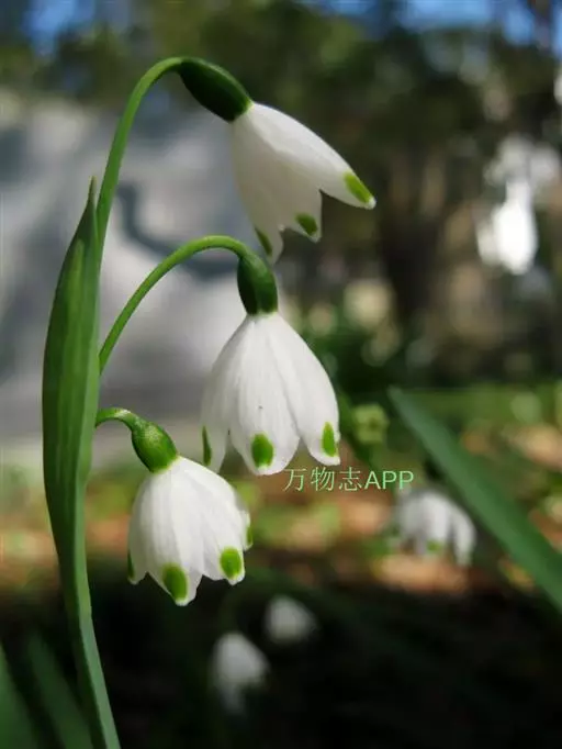 夏雪片莲是石蒜科雪片莲属,多年生球根植物。植株高24~36cm。叶深绿、长剑形。花茎细长,顶端白色花冠下垂,呈灯罩形,各花瓣的端尖都带有绿色的斑纹。花期为晚春至早夏。喜欢全日照。此种植物花形十分美丽动人,是喜欢极湿条件的球根花卉之一。虽然是沼泽园中常见的一种植物,但在野外多生于溪流边沿。