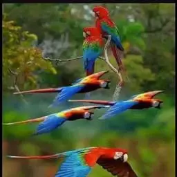 红额金刚鹦鹉:是鸟纲、鹦鹉科的攀禽。体格壮硕强健,体长55-60厘米,平均翼展为81.28厘米,…