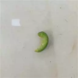 幼虫:老熟幼虫体色为绿色,各体节多皱褶,并布满黑色小瘤状突起,从胸部至腹末气门线上有1条淡黄色纵带,前胸的黄色纵纹处有一黄色瘤突,中胸有一黑色瘤突,后胸有4个瘤突,前面2个为黄色,后面2个为红色;前胸足较退化。