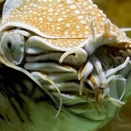 鹦鹉螺:是头足纲、鹦鹉螺科的海洋软体动物的通称。共有2属、6种,具卷曲的珍珠似外壳,…