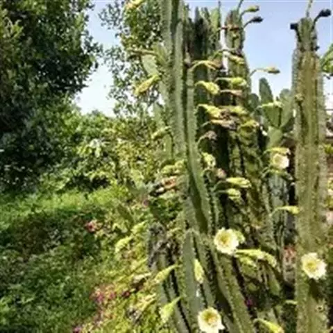 4.修剪枝条:每年采果后剪除结过果的枝条,让其重新发出新枝,以保证来年的产量。火龙果种植方式多种多样,可以爬墙种植,也可以搭棚种植,但以柱式栽培最为普遍,其优点是生产成本低、土地利用率高。