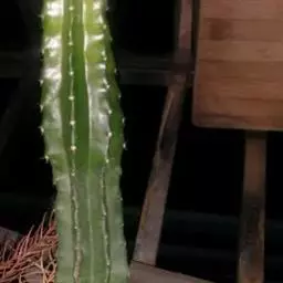 用利刀在霸王花的三棱柱适当高度横切一刀,然后将三个棱峰作30-40度切削,用消过毒的仙人刺刺入砧木中间维管束,将切平的接穗连接在刺的另一端,用刺将接穗和砧木连接起来,砧木和接穗尽量贴紧不留空隙,避免细菌感染不利愈合,然后在两旁各加一刺固定,再用细线绕基部捆紧。