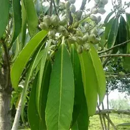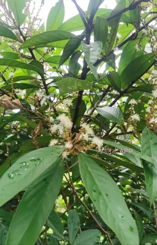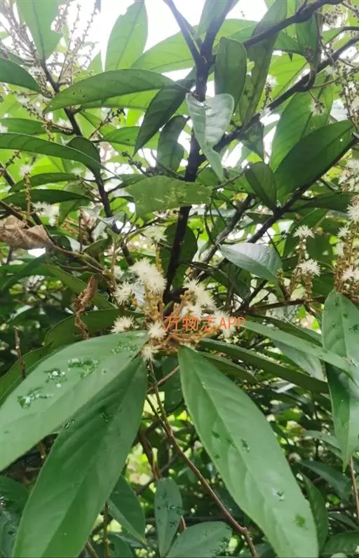 乔木,高可达13米;小枝粗壮,芽、嫩枝、叶柄、叶背中脉均被红褐色绒毛。叶纸质,椭圆形、倒卵状椭圆形或狭椭圆形,长9-27厘米,宽3-10厘米,先端急尖或渐尖,基部阔楔形或近圆形,叶背被柔毛,毛的基部有褐色腺状斑点,边缘有细锯齿或近全缘;中脉在叶面凹下,侧脉每边7-13条;叶柄长1-2厘米。穗状花序长6-11厘米,近基部3-5分枝,花序轴、苞片、萼均被红褐色绒毛;苞片卵形,长约3毫米,小苞片三角状卵形,长约2毫米,背面中肋凸起;花萼长2-3毫米,5裂,裂片卵形,与萼筒等长;花冠有芳香,白色或淡黄色,长约5毫米,5深裂几达基部;雄蕊60-80枚,花丝基部联合;花盘圆柱状,无毛;子房3室。核果圆球形,直径5-7毫米,顶端宿萼裂片合成圆锥状,基部有宿存苞片,核具5-8条浅纵棱。花期8-9月,果期10-11月。
