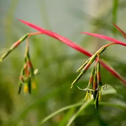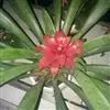 花序于叶丛中抽出,状如松球,长6-8厘米,结果时增大;苞片基部绿色,上半部淡红色,三角状卵形;萼片宽卵形,肉质,顶端带红色,长约1厘米;花瓣长椭圆形,端尖,长约2厘米,上部紫红色,下部白色;生于花序顶部的叶变小,常呈红色。基部鞘状,雨水沿叶面流入由叶鞘形成的贮水器中。花序顶生,圆锥花序。