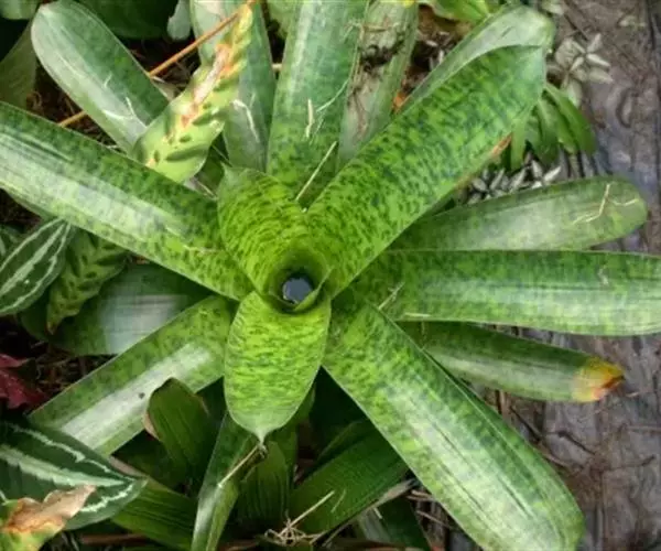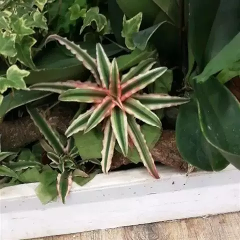 彩叶凤梨 L.B.Sm.) 凤梨科多年生常绿草本。株高25-30厘米,茎短。叶革质,带状,常基生,…
