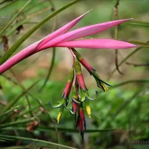 垂花水塔花是凤梨科水塔花属的多年生常绿草本植物。叶基部互相抱合呈杯状,叶革质为长披针形,…