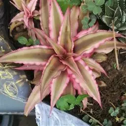 多年生常绿草本,株高可达1.5米。叶多数,狭长,基生,莲座式排列,单叶,全缘,剑形,长40-90厘米,宽6-9厘米,顶端渐尖,全缘或有锐齿,腹面绿色,叶背红色,边缘和顶端常带褐红色。