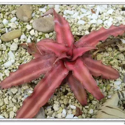 端红凤梨,学名Neoregelia spactabilis,唇凤梨属,凤梨科,常用分株、播种和组培…