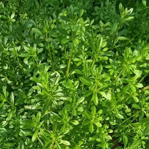 六叶葎 Ehrend. & Schönb.-Tem. ex R. R. Mill)是茜草科拉拉藤属的一年生草本。常直立,有时披散状,高10-60厘米左右,近基部分枝,有红色丝状的根;茎直立,具疏短毛或无毛;叶片薄,纸质或膜质,长圆状倒卵形、倒披针形、卵形或椭圆形顶端钝圆而具凸尖;聚伞花序顶生和生于上部叶腋,苞片常成对披针形,花冠白色或黄绿色,裂片卵形,雄蕊伸出;果近球形,单生或双生,密被钩毛;花期4-8月;果期5-9月。六叶葎分布于中国北、山西、陕西、甘肃、江苏、安徽、浙江、江西、河南、湖北等地,印度、巴基斯坦、尼泊尔、锡金、不丹、缅甸、日本、朝鲜、俄罗斯均有栽培。生于海拔920-3800米的山坡、沟边、河滩、草地的草丛或灌丛中及林下。六叶葎味甘,性平,具有清热解毒、利尿消肿的功效,可用于治疗尿路感染、赤白带下、痢疾、痛肿、跌打