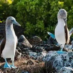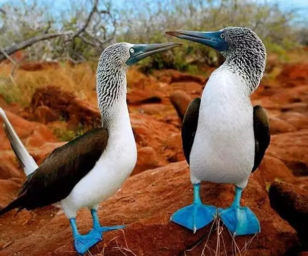蓝脚鲣鸟,是一种大型的热带海鸟。平均身长80厘米,体重约1.5千克。雌性比雄性稍大些。最引人注目的…