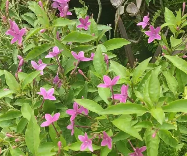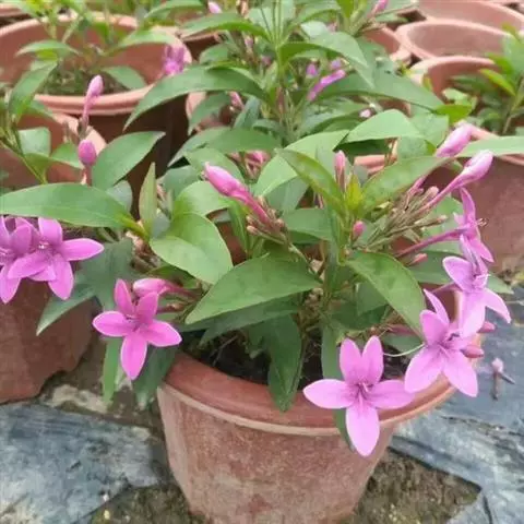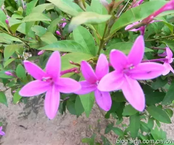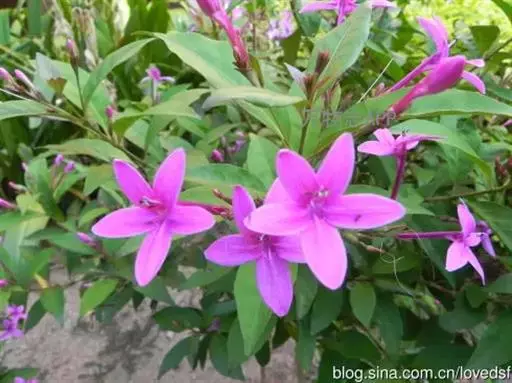 常绿灌木,株高约20~50厘米,分枝较多。叶对生,长椭圆形或披针形,顶端渐尖,基部楔形,全缘。花长筒状,腋生,先端5裂 ,紫红色。花期夏、秋。