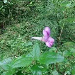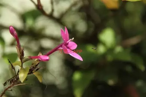 紫云杜鹃 又称大花钩粉草,紫云花。分类:爵床科。分布:斐济岛。常绿灌木,株高约20~50厘米,分枝较多。叶对生,长椭圆形或披针形,顶端渐尖,基部楔形,全缘。花长筒状,腋生,先端5裂 ,紫红色。花期夏、秋。