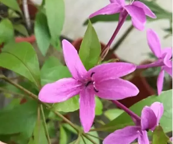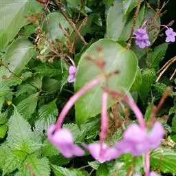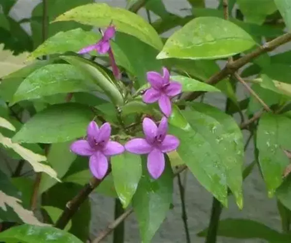 紫云杜鹃并非杜鹃花类,株高约20~50厘米,善分枝。叶对生,长椭圆状披针形,全缘。夏、秋季开花,腋出,花冠长筒状,先端5裂,紫红色;成株易开花,花姿柔美,适合庭园绿篱,丛植或盆栽 。