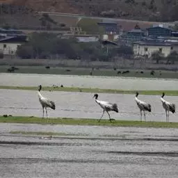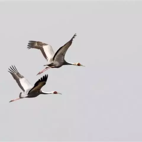 黑颈鹤:是鹤科、鹤属的大型涉禽,体长110-120厘米,体重4-6千克。颈、脚甚长,通体羽毛灰白色,…