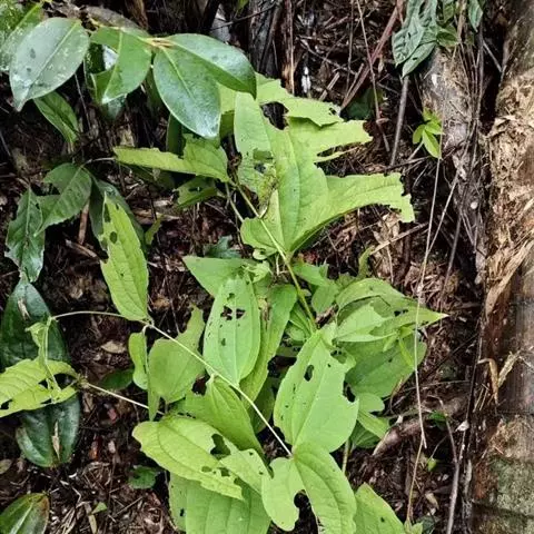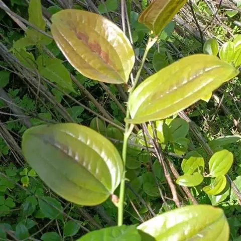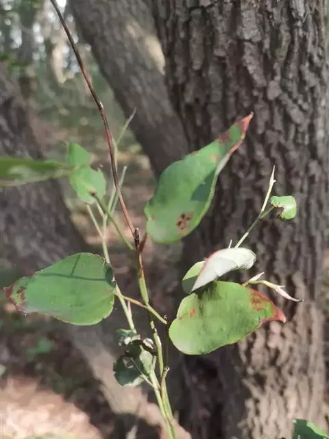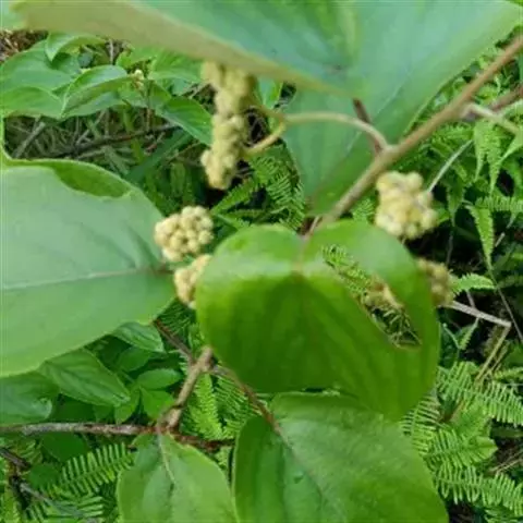 菝葜,菝葜科菝葜属 多年生藤本落叶攀附植物,茎干较粗,嫩白色,呈圆柱形,表面带有小刺;叶子较大,…
