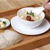 食材:牛肉250克,洋葱25克,胡萝卜25克,菜花25克,豌豆10克,口蘑5克,豆角10克,香菜10克,番茄10克,龙须菜5克。