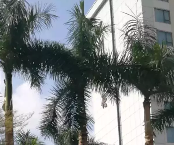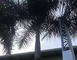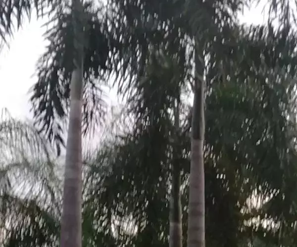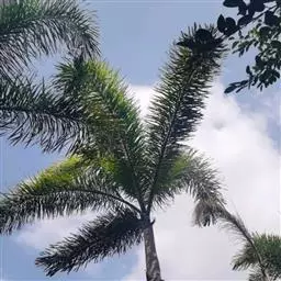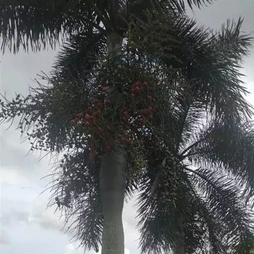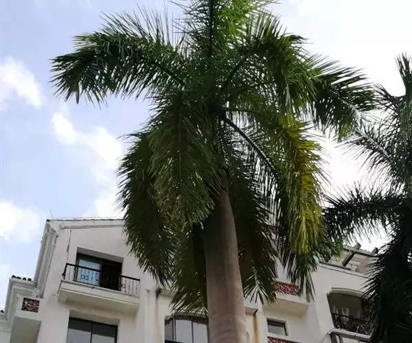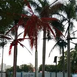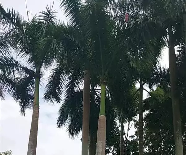 王棕(学名:Roystonea regia (H.B.K)O.F.Cook):又名大王椰子。乔木;单干,直立叶痕不明显,叶簇生于干顶,叶片大,长达3米以上,叶鞘长大,羽状全裂,羽叶狭长柔软,列序不甚整齐,深绿色。干粗壮雄伟,中下部膨大,呈佛肚状,径达40厘米以上,确为棕类之王,是显示热带壮丽风光的典型树种,