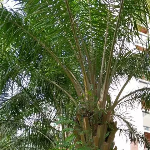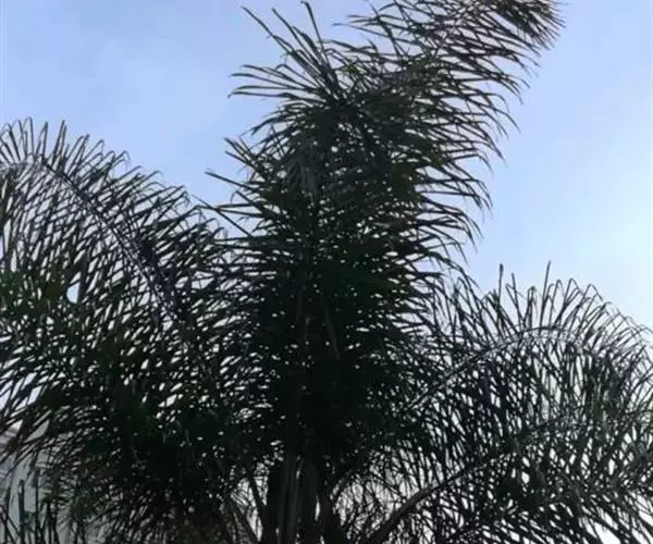王棕,茎直立,乔木状,高10-20米;茎幼时基部膨大,老时近中部不规则地膨大,向上部渐狭。叶羽状全裂,弓形并常下垂,长约4-5米,叶轴每侧的羽片多达250片,羽片呈4列排列,线状披针形,渐尖,顶端浅2裂,长90-100厘米,宽3-5厘米,顶部羽片较短而狭,在中脉的每侧具粗壮的叶脉。
