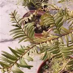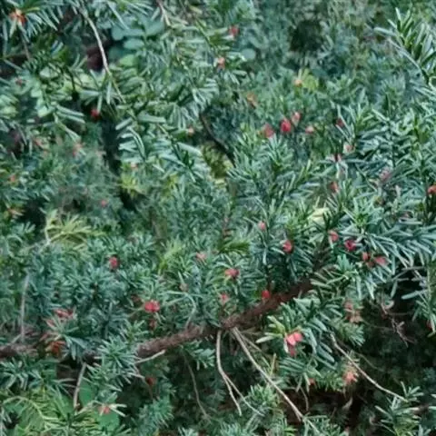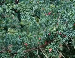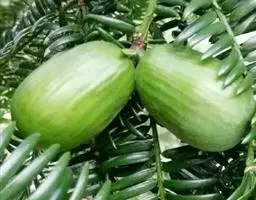 曼地亚红豆杉是常绿针叶树种,多为灌木型,树冠卵形,树皮灰色或赤褐色,有浅裂纹,枝条平展或斜上直立密生,1年生枝绿色,秋后呈淡红褐色,2-3年生枝呈红褐色或黄褐色。叶排成不规则的2列或略呈螺旋状,条形,为镰状弯曲,长1-3厘米,宽0.3-0.4厘米,浓绿色,中肋稍隆起,背面灰绿色,有2条气孔带,雌雄异株,种子广卵形,长0.5-0.7厘米,径0.35-0.5厘米,生于鲜红色杯状肉质假种皮中,上部稍外露。4-5月开花,7-8月种子成熟,9-10月可采收果实。