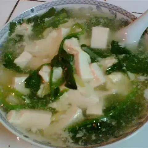 豆腐海带汤是一道色香味俱全的传统名肴,属于北京菜。将豆腐切丁,菠菜切段,海带切丝;锅内放入开水,加…