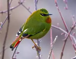 习性:灰腹噪鹛栖息于海拔3200-3800米的河谷阶地锦鸡儿灌丛和阳坡杨树林及青冈灌丛地带。繁殖期中大都成对。平时常十多只结集小群,低飞活动于地面上或灌丛间,有时偶见于杨树枝头。 有时与黑顶噪鹛一道活动。